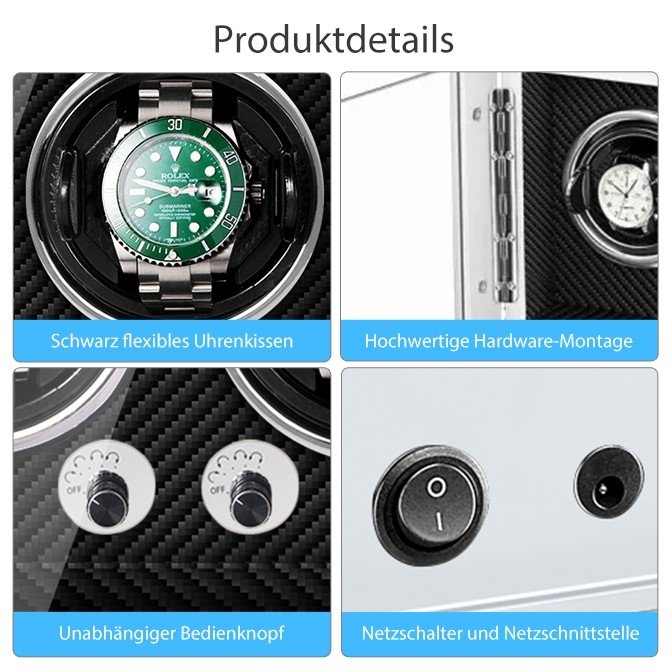 Der Uhrenbeweger wird über ein 100-240 V Netzteil (im Lieferumfang enthalten). Praktisches Design
