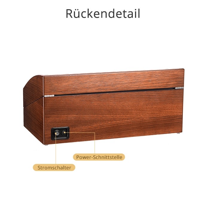 Dieser Uhrenbeweger verwendet einen hochwertigen japanischen Mabuchi-Motor, der eine bekannte Marke für die Herstellung von Präzisionsmotoren ist. Diese Motoren steuern Geräusche unter 10 dB, sodass sie, obwohl Sie sie in Ihrem Schlafzimmer aufstellen, Ihnen auch ein extrem leises Erlebnis bieten können.